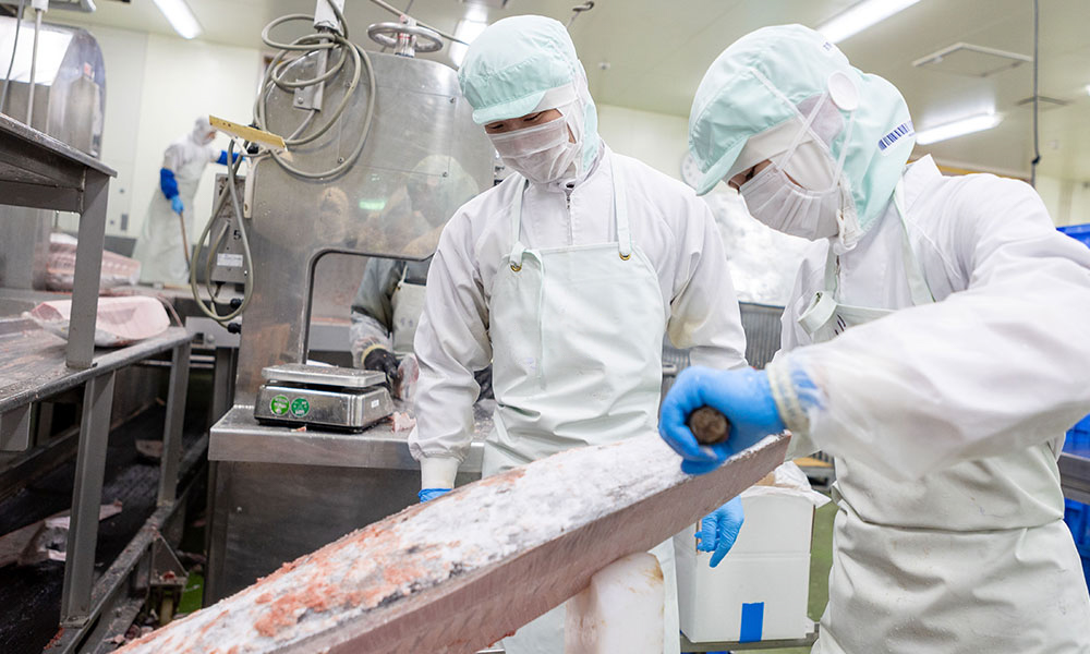 工場では切り落としからネギトロへなどといった切り替えが頻繁にあり、当然ながら商品が混ざらないように常に神経を尖らせ、注意しなければなりません。先輩方から教えてもらったことをふまえて、自分でも改善策を提案した内容が採用され、正確性や効率性が改善されたときは嬉しかったですね。先輩方も気軽に相談に乗って下さる環境なので、色々なトライができることはやりがいになります。