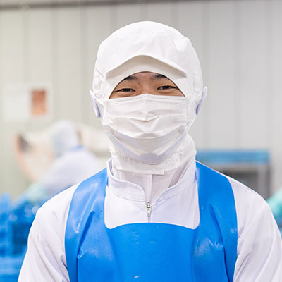 工場では切り落としからネギトロへなどといった切り替えが頻繁にあり、当然ながら商品が混ざらないように常に神経を尖らせ、注意しなければなりません。先輩方から教えてもらったことをふまえて、自分でも改善策を提案した内容が採用され、正確性や効率性が改善されたときは嬉しかったですね。先輩方も気軽に相談に乗って下さる環境なので、色々なトライができることはやりがいになります。